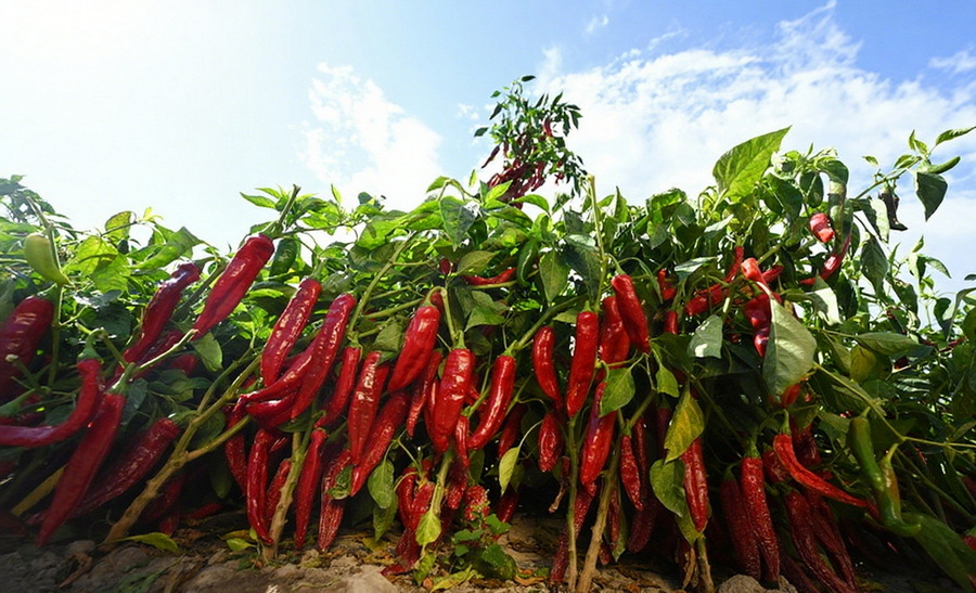 峰會現場,興蔬種業公司展示了豐碩的產業成果,在焉耆縣五號渠鄉頭號渠村,萬畝戈壁辣椒種植基地集中示范成果斐然,鄒學校團隊新培育的色素椒新品種“興蔬紅186”長勢旺盛。